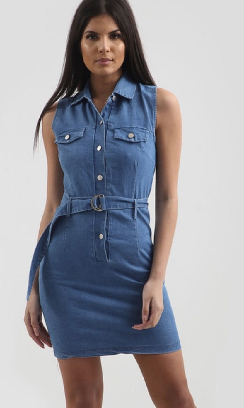 Gorgeous denim belted military style dress. Above knee. Stretch. Belted. Stretch light weight