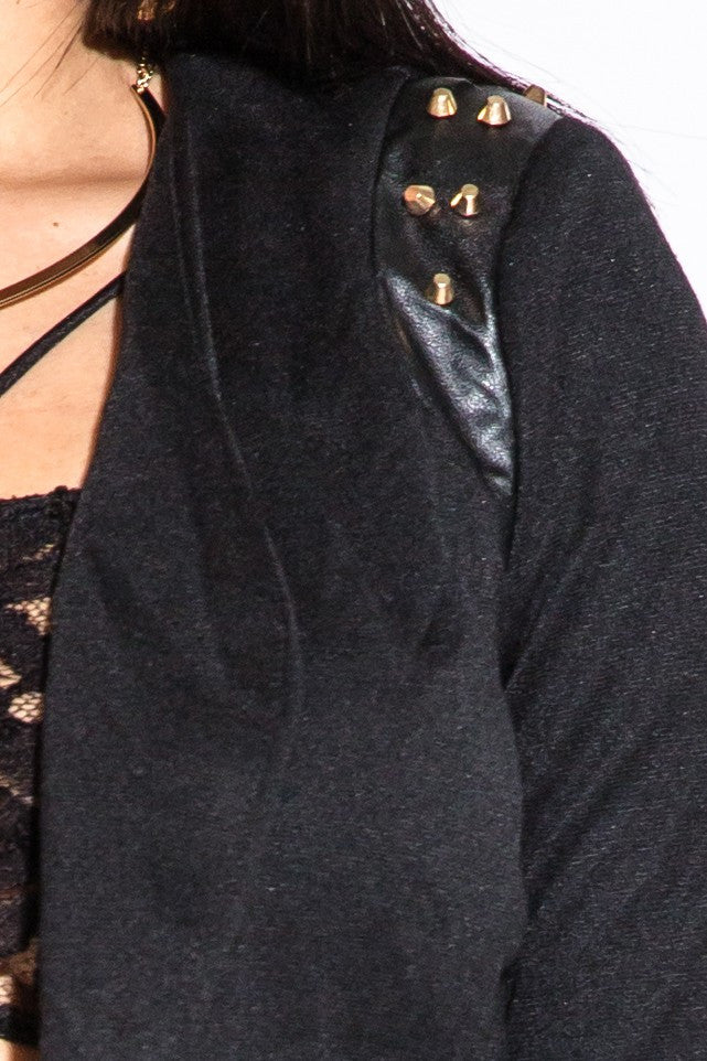 The faux-leather and spiked accents on the shoulders .Collarless. Unlined.