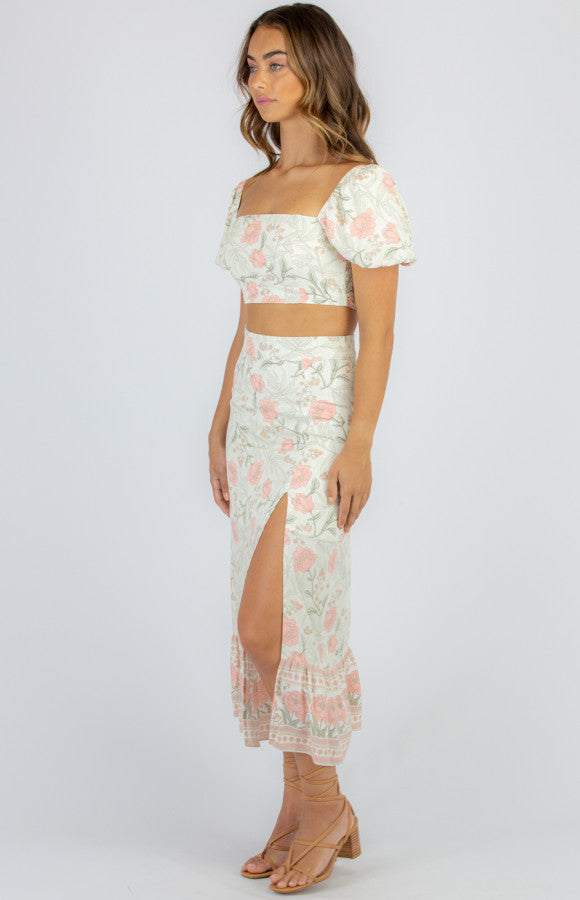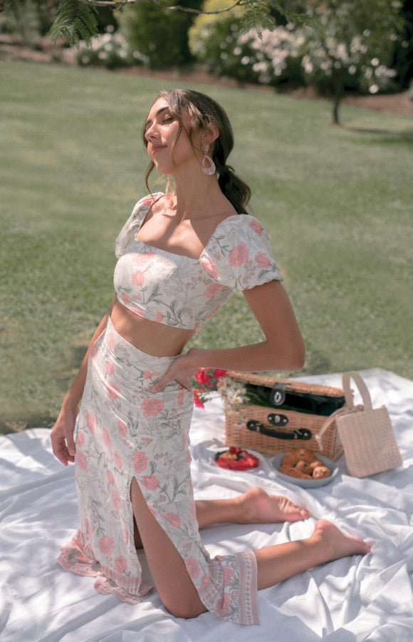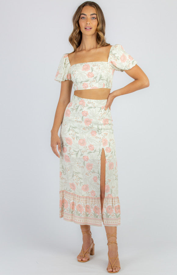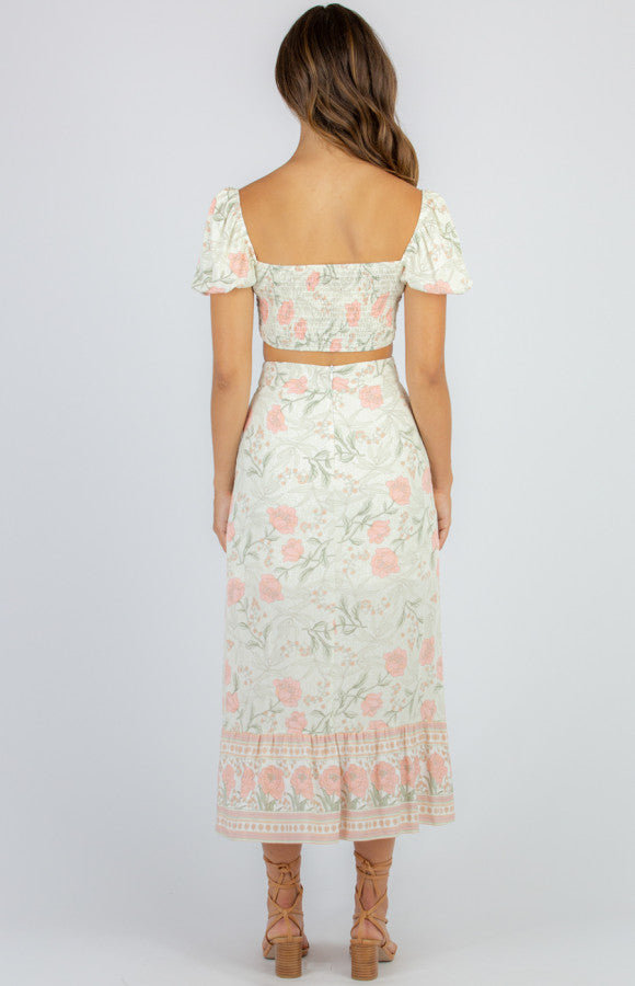 This set is so beautiful and great for this season with its Cotton Boho floral print fabrication. Square neckline