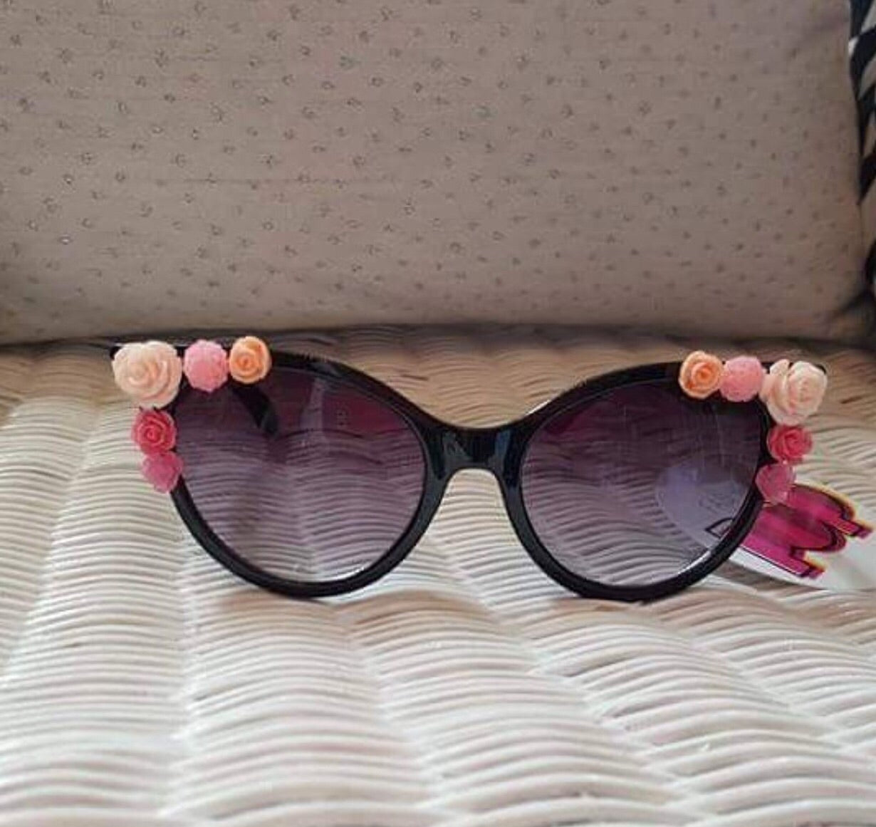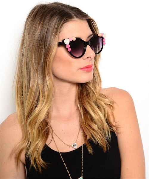 Cat eye detailed flower sunglasses, ombre tint. pink flowers