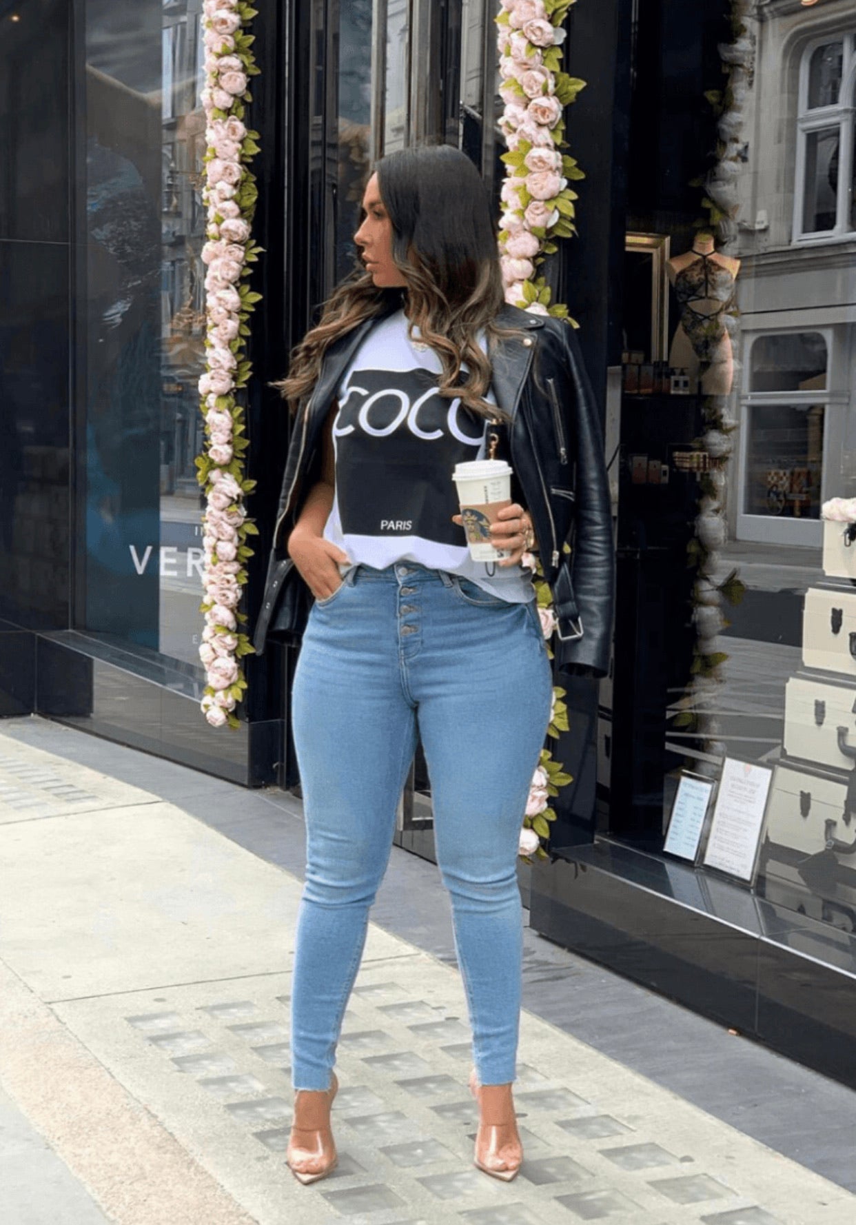 Ease yourself into this season with this coco print t shirt featuring short sleeves & round neck. Team with a denim skirt & heels for a chic day look.coco print t shirt. short sleeves. round neck. tee fit