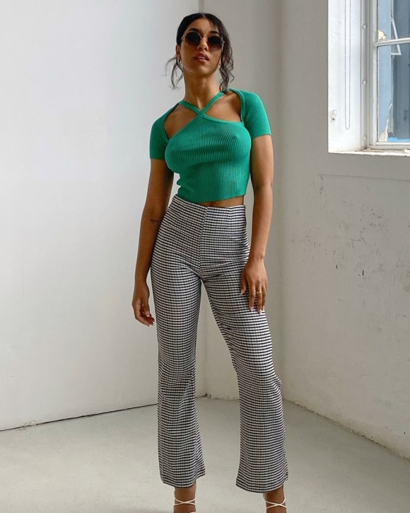 This top is must for this season with its Medium weight stretch rib knit. Criss cross neckline detail.Short sleeve design.Cropped length.Fitted design. Model is 177cm tall and is wearing a size S/M