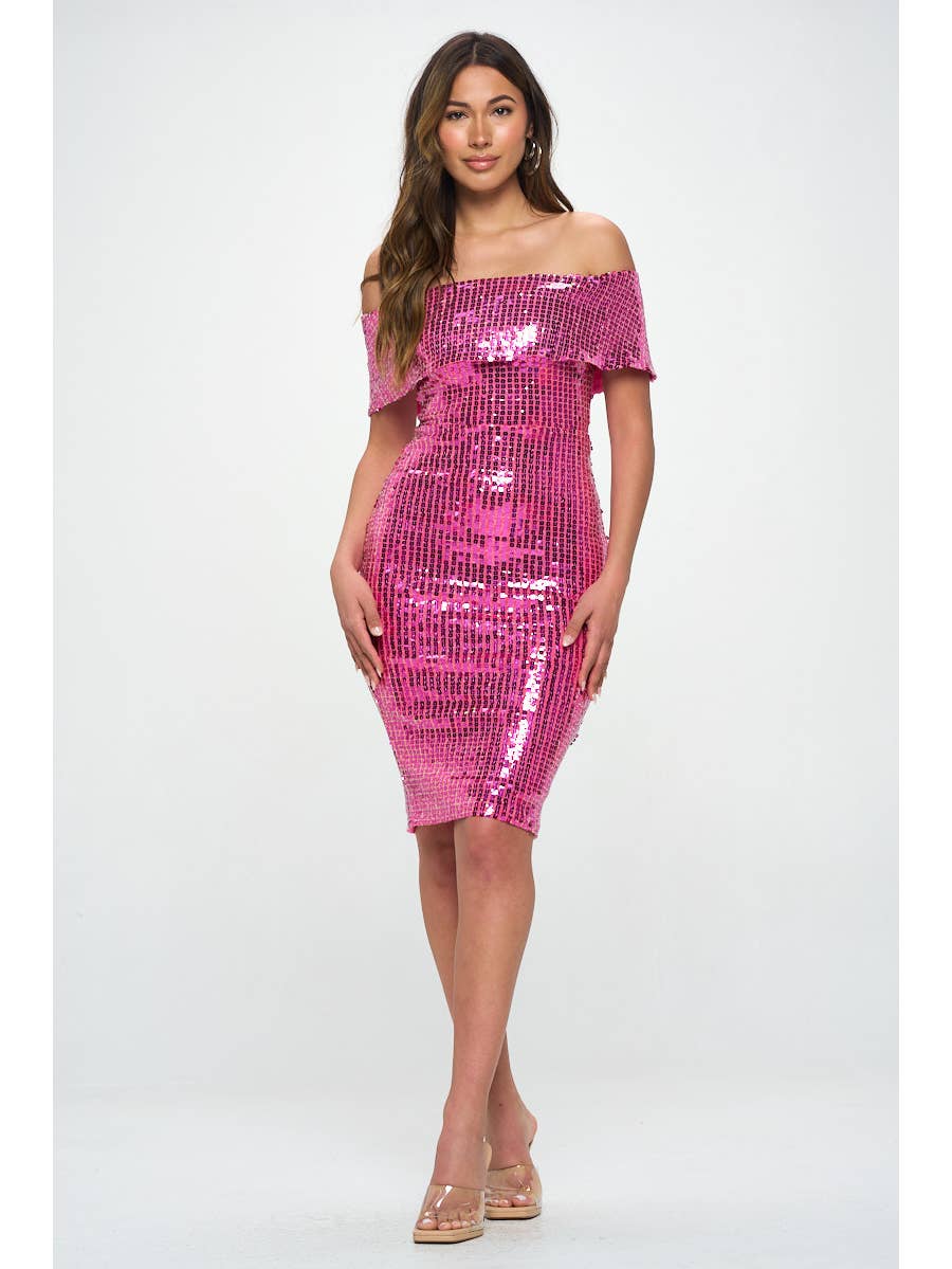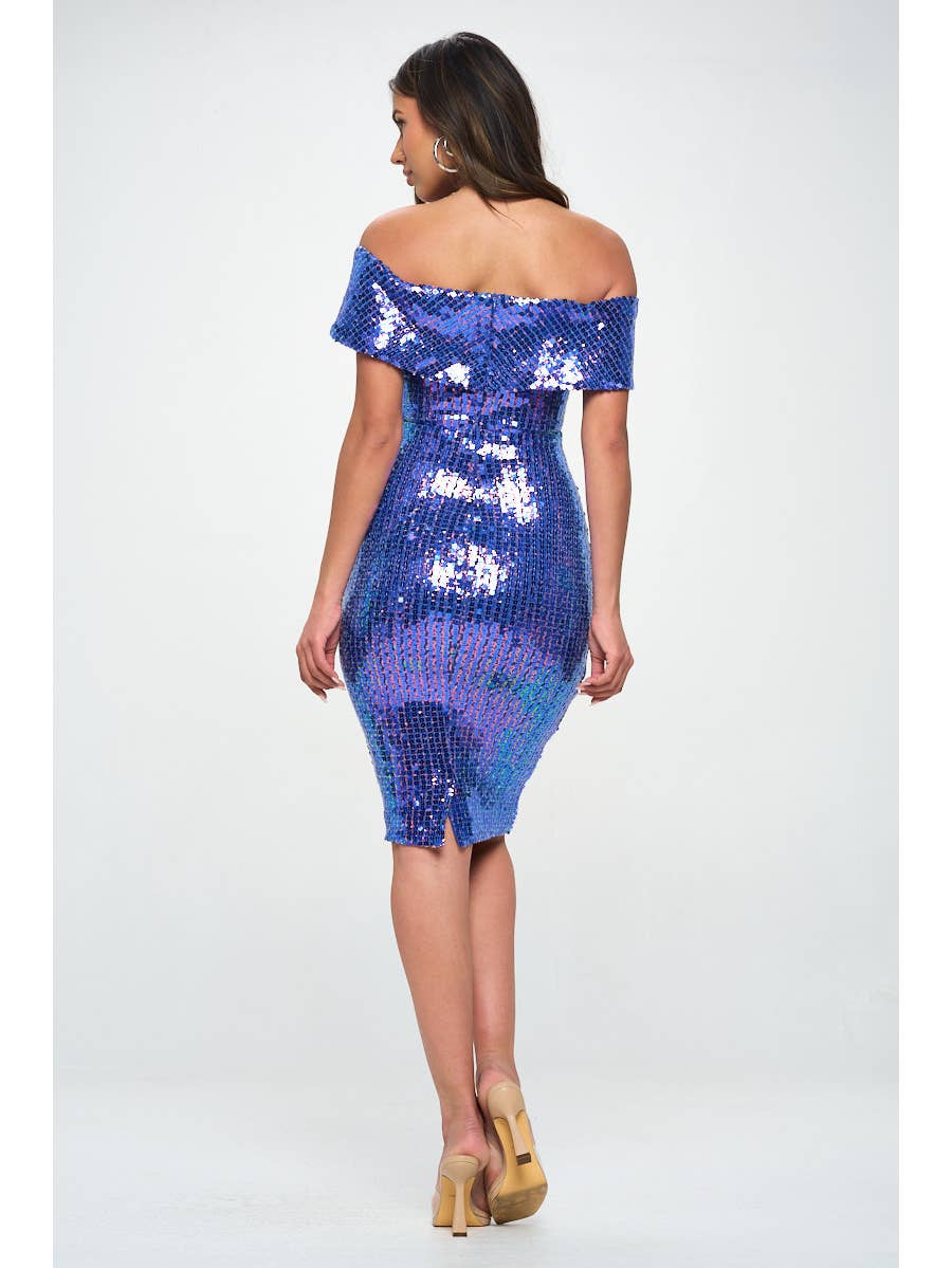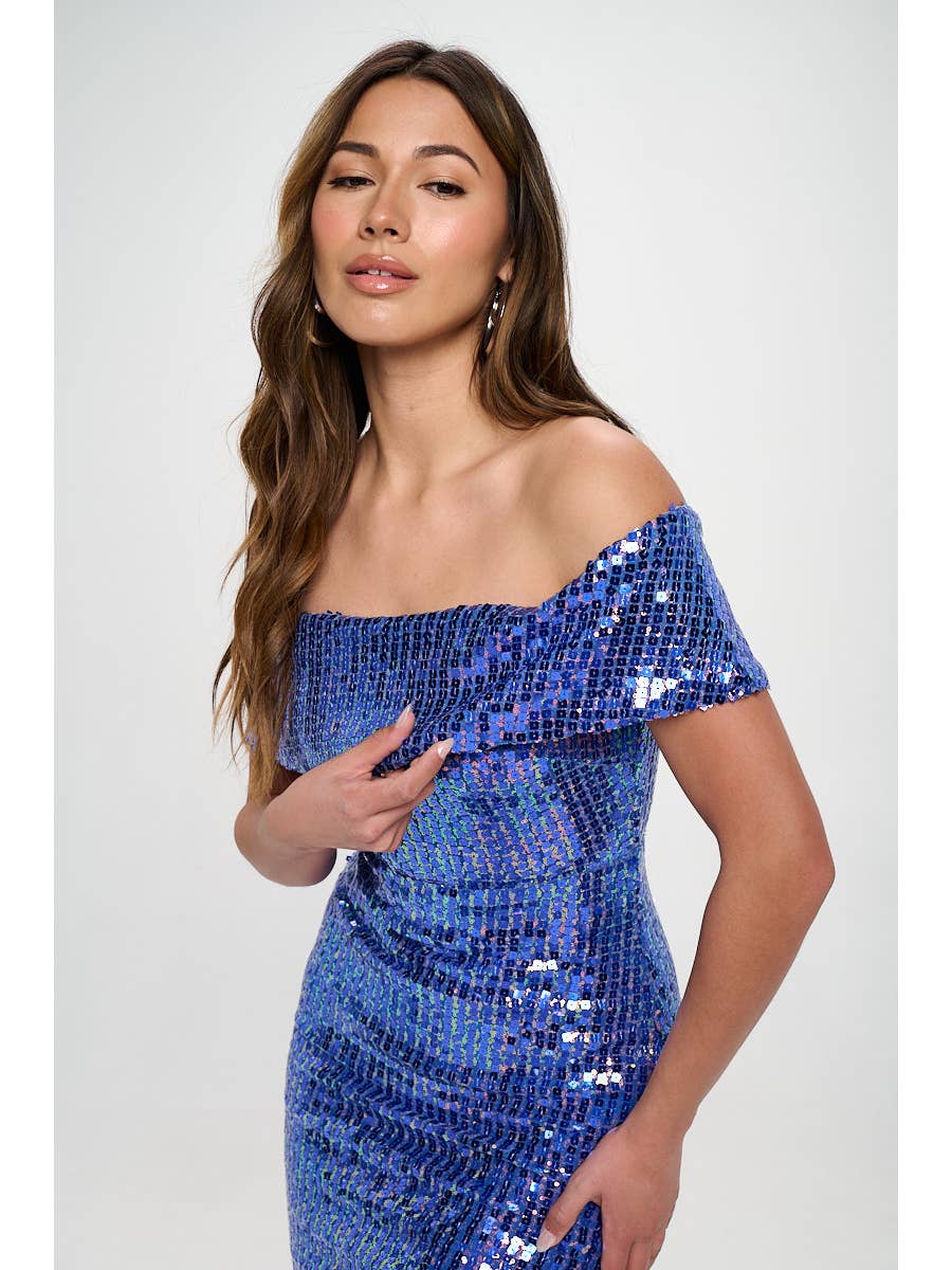 This dress is stunning featuring sequence glam .Off the shoulder. This dress will turn heads for all the right reasons at your next special occasion
