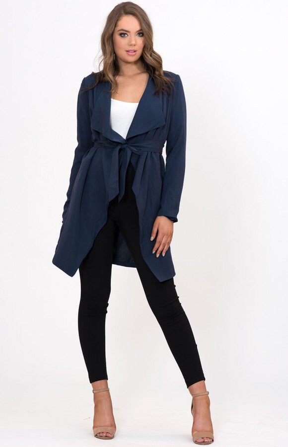 This lapel jacket is gorgeous. Navy blue in colour has fitted sleeves
