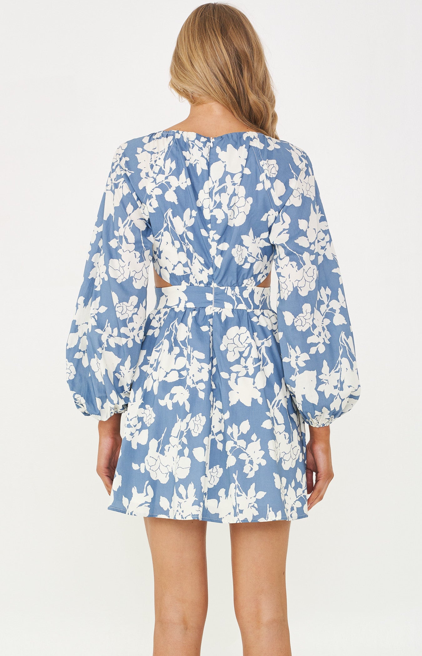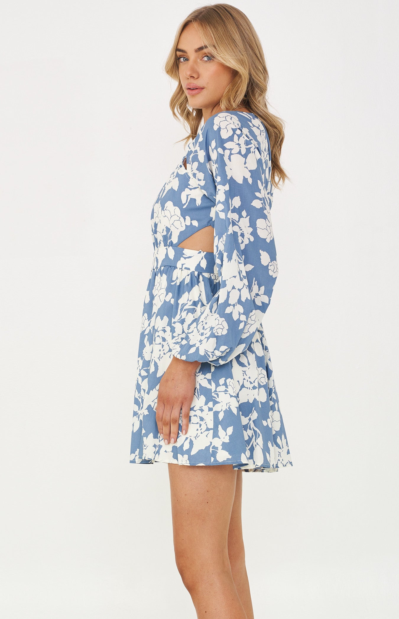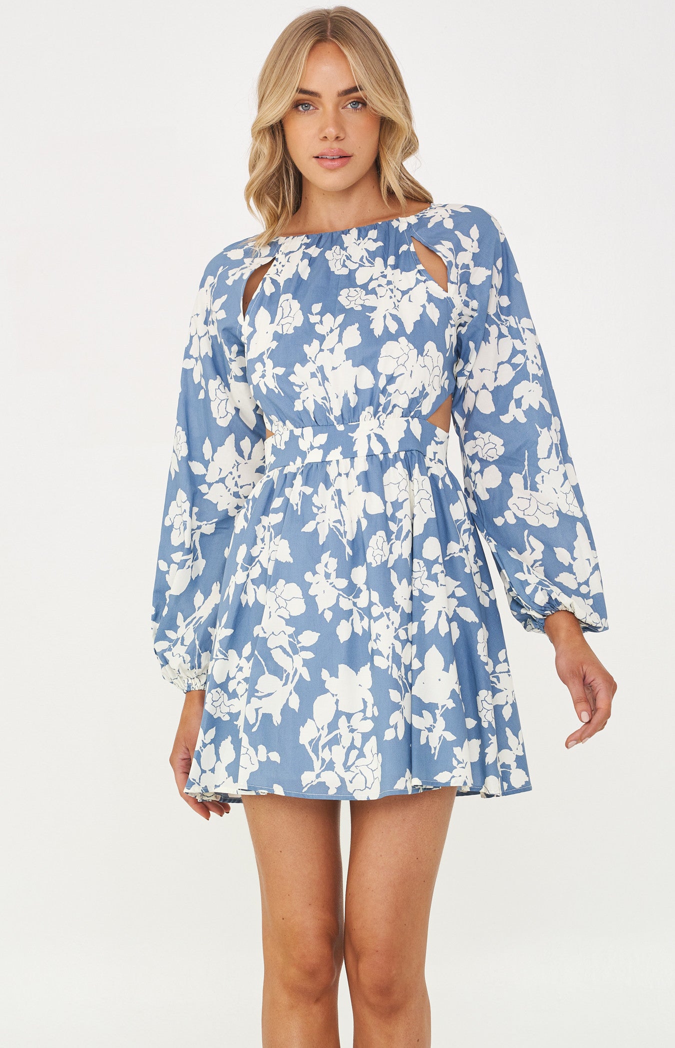 This beautiful dress features a floral printed design.Waist cut out detail.Cut out detail at shoulders.Long sleeve design.Shirred detail at cuff.Invisible zip centre back.Mini length. Model is wearing a size 8. Model's height is 173cm