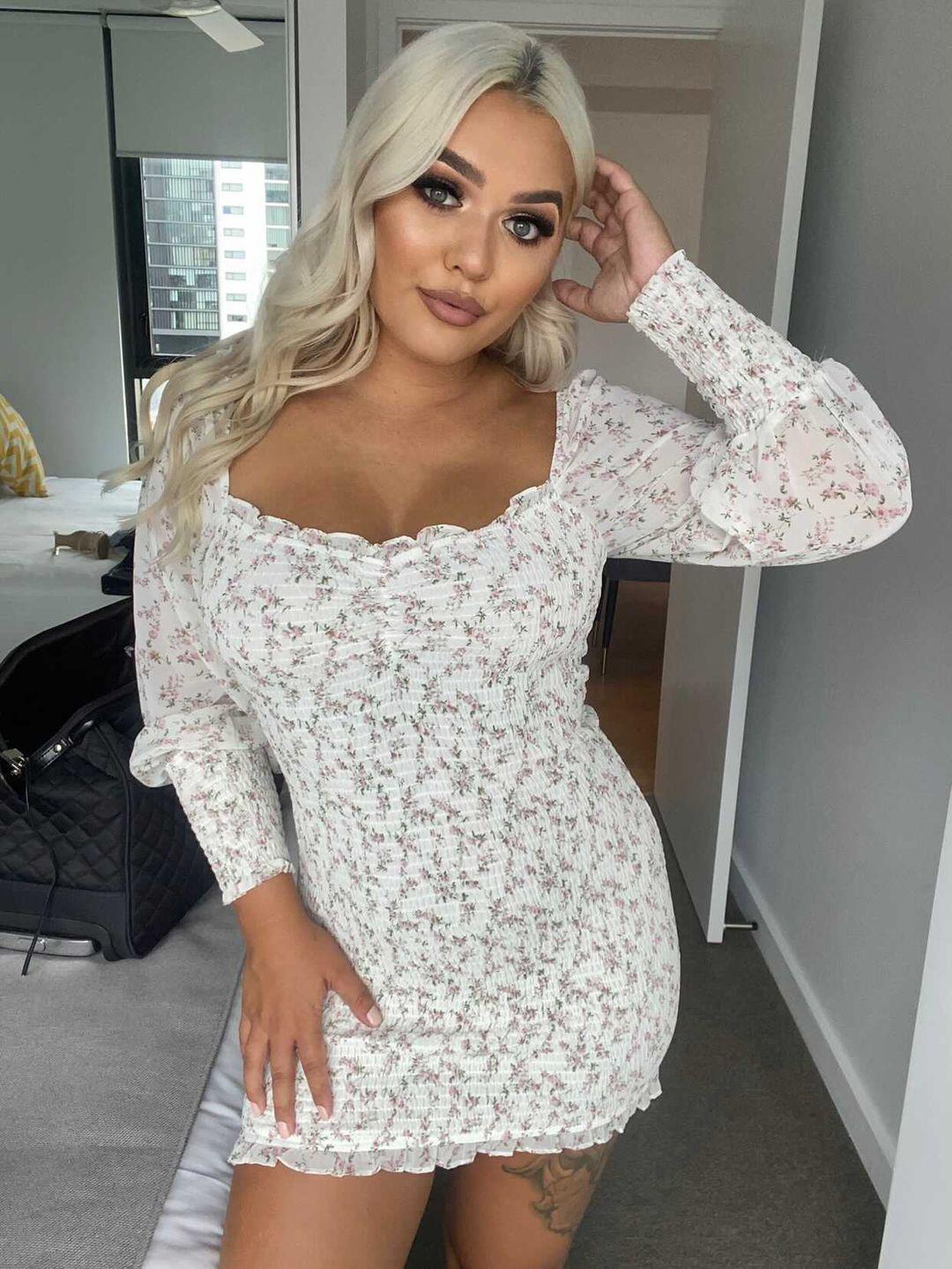 Shirred detail throughout dress and at cuff.Long sleeve designMini length.Fitted design