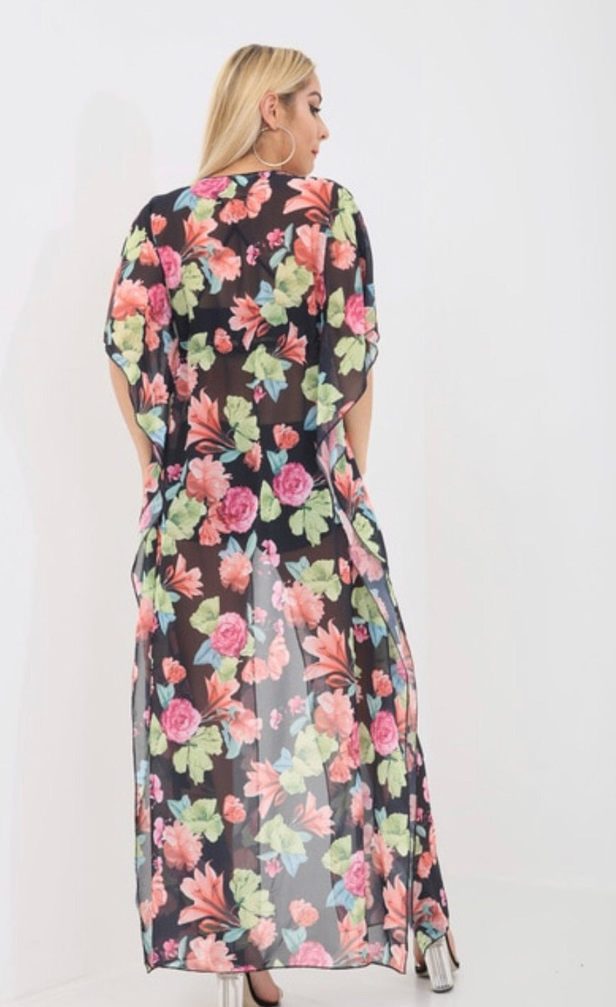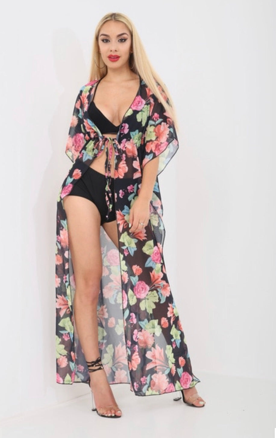 All the florals you need in your life right with our kimono, with floral prints in a long style with tie waist. Absolutely gorgeous