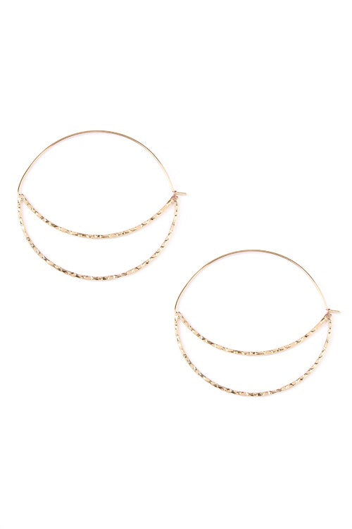 Gold hoop earrings in a half moon design. Clip shut