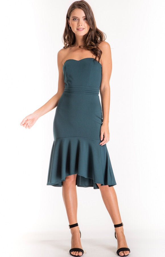 Gorgeous teal midi dress. Strapless. Flow and fitted bodice.