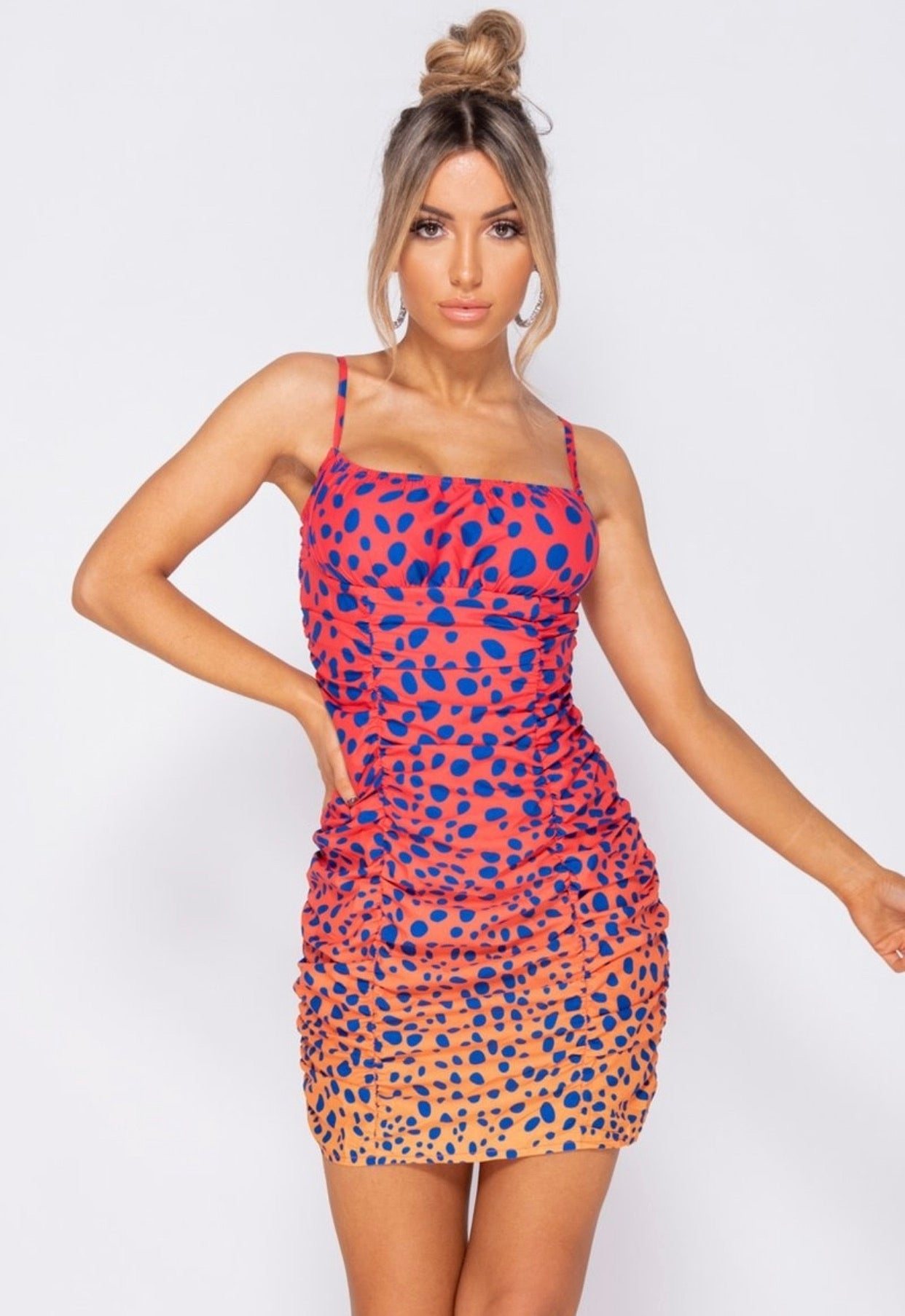 If your shopping for the perfect animal print dress this season you're in luck! This leopard print bodycon mini dress featuring ruching detail is perfect for your next night out. Pair with killer heels & clutch to take your outfit to the next level.mini dress.leopard print.ruching detail. bodycon fit no stretch