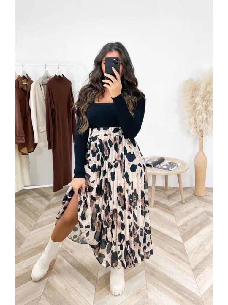 This gorgeous skirt features a beautiful beige leopard print. Elastic fitted strtch waist. Maxi style. Pleat design great from day to night this us such a versatile piece for any wardrobe.