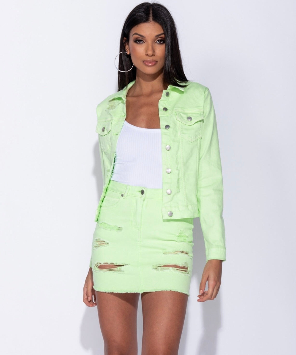 Denim jackets are a classic timeless piece & few things have the versatility of this denim mainstay! This western denim jacket featuring multi rip detail t & button front detail can be teamed with skinny jeans & a bodysuit.