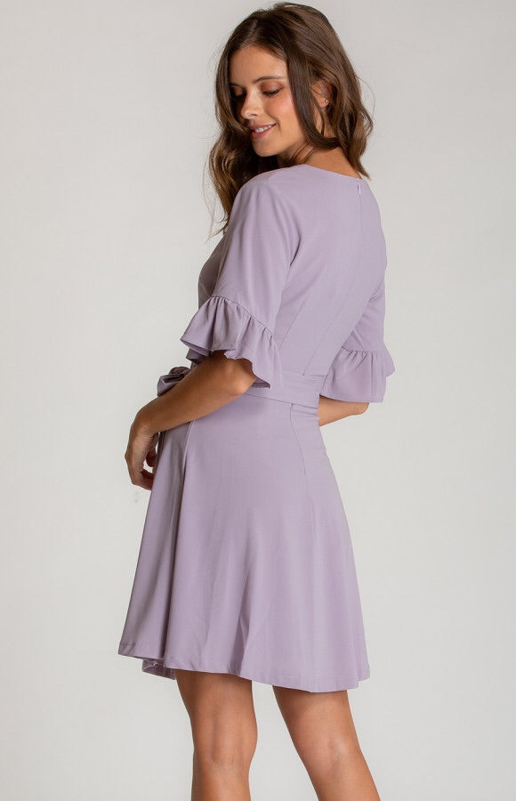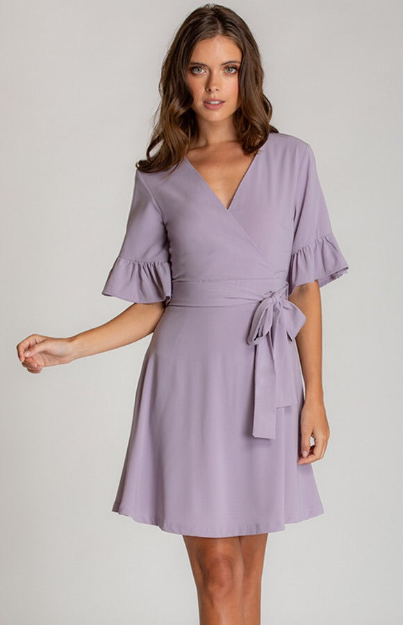 This dress is great for this seasons spring looks. Elegant and full of class with its V-neckline design. Centre back invisible zip. Waist seam panel for flattering fit. Self fabric belt on front. Ruffle details around sleeve. Â Fully line. Mini lengtH. Â model is 168cm tall and is wearing a size 6