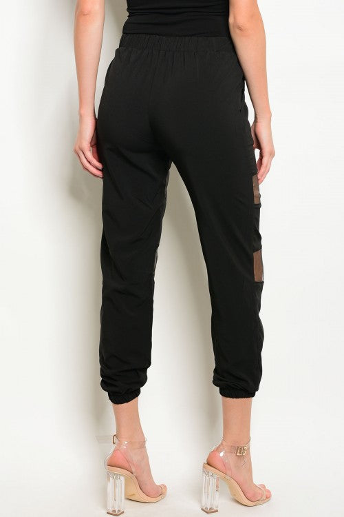 Black mesh panel jogger pants with draw string.USA
