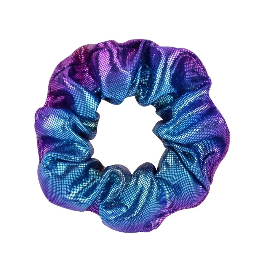 Metallic scrunchie. Blues and purple in colour. Elastic stretch
