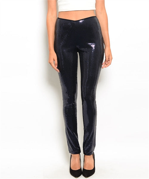 Sequins pants in navy. 97% polyester 3% spandex