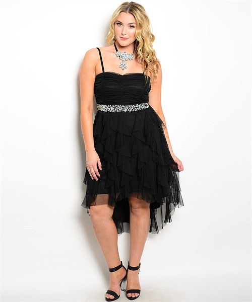 Stunning black Plus size high low dress. With beaded waist and sash. Fitted bodice then flow waist 100%.
