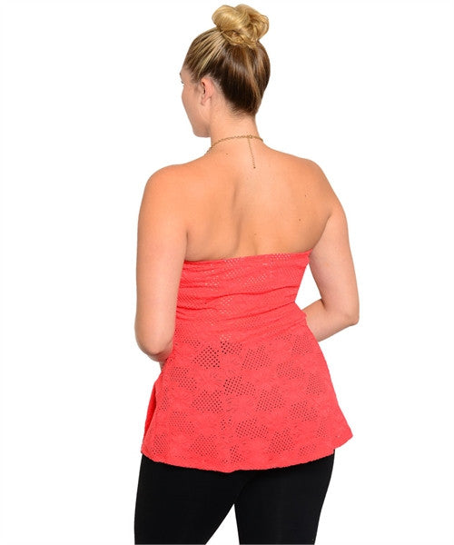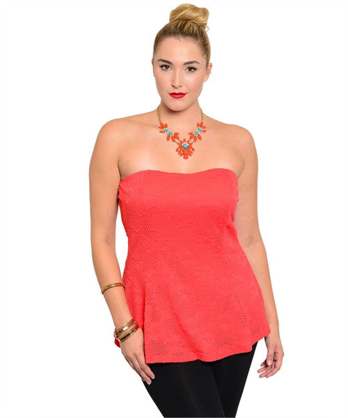 Plus size . Strapless orange coral long bustier. Stretch. USA