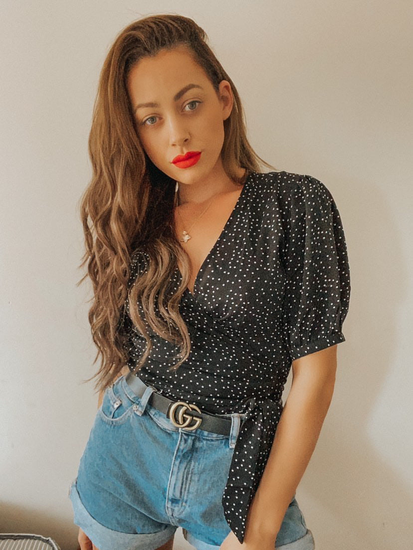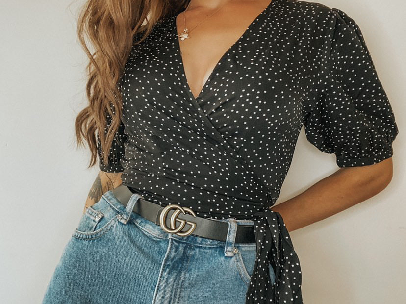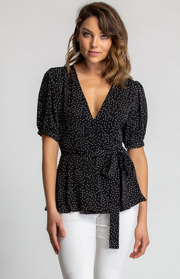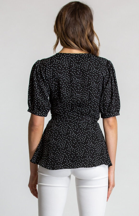 This Polka dot bubble blouse is a must have piece this season. Featuring its V neckline design