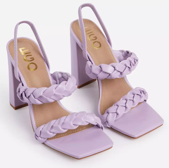 This lilac strappy braided sandles are a must statement piece or this season. Add to jeans or a dress for the ultimate season look. Square design. Buckle strap. Chunk heel