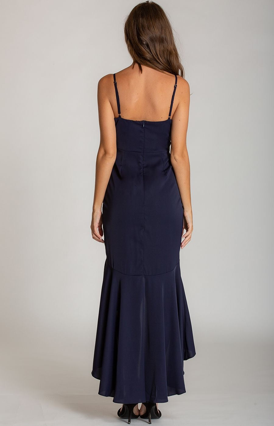 This Navy dress is absolutely beautiful with its , V-neckline feature Singlet design. Adjusted straps