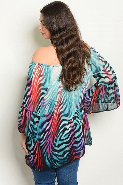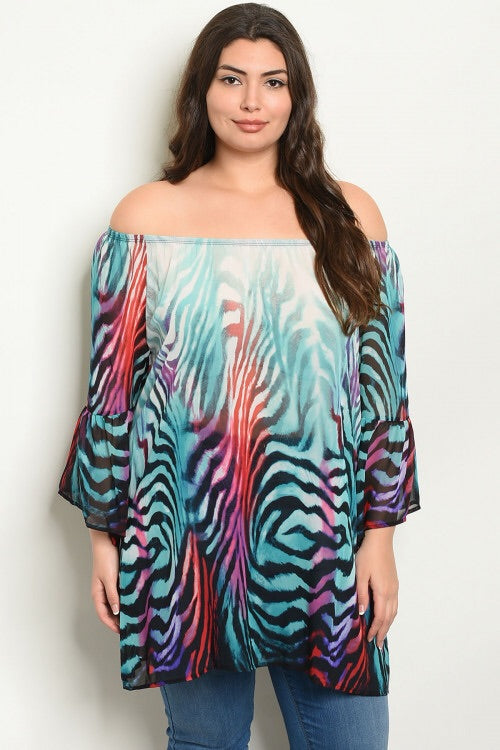 This off the shoulder top is exclusive to our Curvy/ Plus range. Colourful zebra print. Long flow design. Gorgeous piece